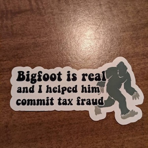 Big Foot Is Real Sticker Tax Fraud Cryptid Sticker Etsy