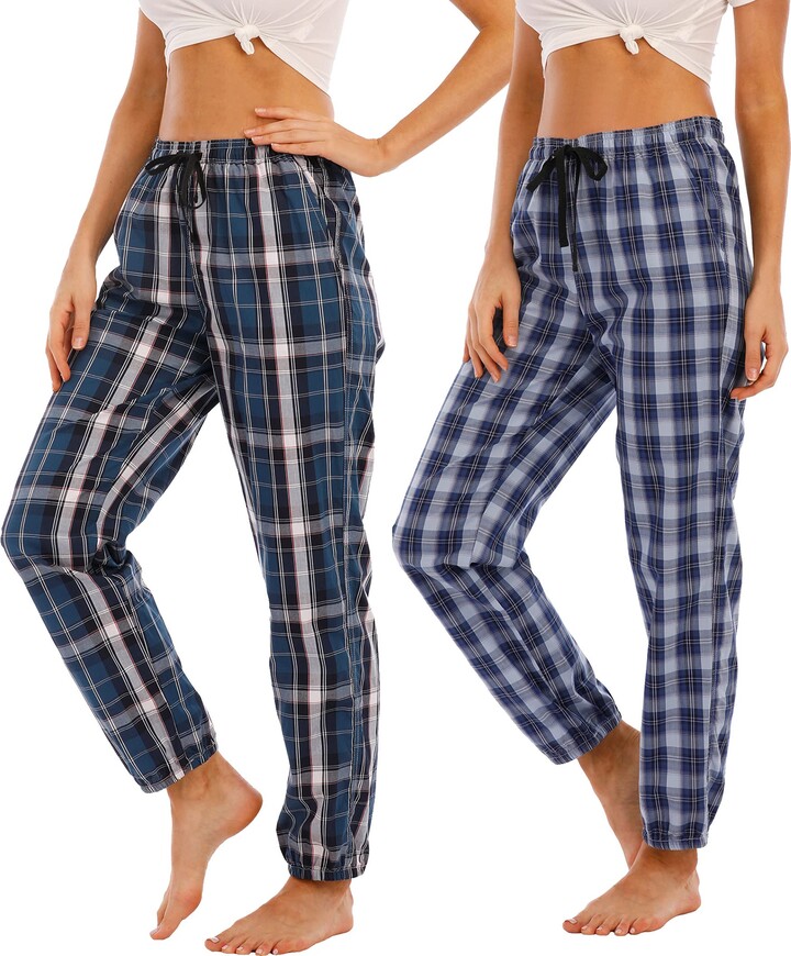 Ajezmax Ladies Cotton Plaid Pyjama Bottoms Lounge Trousers Nightwear Casual Pajama Sleeping Pants Check M Shopstyle