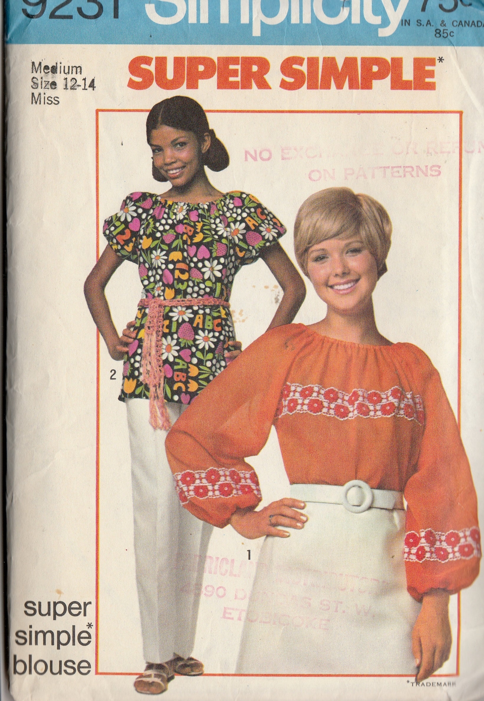 Vintage 70 S Simplicity 9231 Boho Tops With Raglan Short Etsy